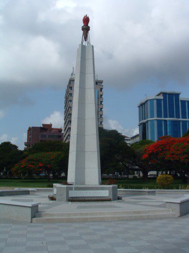 Finally now turning into Bibi Titi Mohamed Street, always straight at the Institute of Technology cross, we reach the Uhuru Monument ( https://lh5.ggpht.com/p/AF1QipMoTY4Mbxi ... 3Pd9=w1850 ), an obelisk with a replica of the Uhuru Torch mounted at its top. The Uhuru Torch is a national symbol of Tanzania and symbolizes freedom and light.